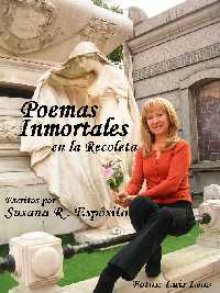 En el mismo, vuelca sus impresiones y percepciones sobre la muerte en forma poética, porque como ella dice: "la muerte también puede ser poesía". Las fotografías tomadas por Luis Leoz, hacen visible lo que dicen los poemas. En el prólogo, manifiesta las razones que la llevaron a escribirlo: Poesía es un conjunto de palabras que movilizan nuestros sentimientos y nos permiten apreciar la belleza y el arte que también se puede encontrar en un cementerio. Tal vez sea difícil comprender que alguien pueda escribirle a un cementerio, a sus sepulcros y a quien consideramos nuestra enemiga, "la muerte". Sí, nuestra enemiga, porque viene a interrumpirnos nada más y nada menos que la vida, cortando muchas veces nuestros proyectos. Viene a buscarnos sin una cita previa y generalmente, no nos permite ni siquiera despedirnos. Otras veces nos arrebata a los seres más queridos y nos deja el dolor de la pérdida y la impotencia que nos provoca su impunidad. Si bien pensamos en un poema como algo romántico, que solo refleja el amor, nos equivocamos, también poéticamente se expresan tristezas, desencantos, rencores, sufrimientos y despedidas. ![]() Estos "Poemas Inmortales" permitirán conocer sentimientos e historias del sueño eterno y son mi sencillo homenaje a quienes descansan en el Cementerio de Recoleta, después de su ardua tarea en esta vida, cuando fueron gestando las bases para un futuro mejor. Tal vez puedas descubrir los mensajes que transmiten las esculturas que embellecen los sepulcros: historias de amor, odio, ternura y una simbología muy particular. Poesía es un conjunto de palabras que movilizan nuestros sentimientos y nos permiten apreciar la belleza y el arte, que también se puede encontrar en un cementerio. Los seres humanos miramos a nuestro alrededor con ojos diferentes, y la poesía estará presente en todo aquello que miremos con el corazón. Este trabajo es un broche a muchos años de investigación acerca de un tema que parece escabroso y sin embargo, luego de leer Poemas Inmortales, cambiará la manera de apreciar el Patrimonio que atesora el cementerio de Recoleta. "Poemas Inmortales en la Recoleta", y la web www.cementeriorecoleta.com.ar (única página dedicada exclusivamente a este cementerio, diseñada por Luis Leoz y Susana Espósito) han sido seleccionados para participar del VII ENCUENTRO IBEROAMERICANO DE VALORACIÓN Y GESTIÓN DE CEMENTERIOS PATRIMONIALES Y ARTE FUNERARIO Y III JORNADAS NACIONALES DE PATRIMONIO SIMBÓLICO EN CEMENTERIOS. o los teléfonos que figuran al pie de página. |