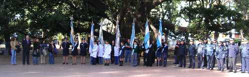 Los festejos del 25 de mayoLa ciudad amaneció con sus balcones enbanderados y los vehículos que transitaban Buenos Aires también lucían orgullosos los colores de la Patria, celeste y blanco.El acto más importante, o de mayor trascendencia, se llevó a cabo en la Plaza de Mayo, donde concurrieron alrededor de 350 mil personas a las que el Presidente de la Nación, Néstor Kirchner, saludó eufóricamente desde la terraza de la casa rosada. Hubo artistas invitados como Mercedes Sosa, Víctor Heredia, Alejandro Lerner y Teresa Parodi., que engalanaron los festejos por el día de la patria. Conozca Buenos Aires presenció el acto realizado en la Plaza Vicente López, convocado por la Comisaría 17, conjuntamente con Conciencia Zona 1. ![]() Este acto contó con la presencia de la Banda del Colegio Don Bosco (Exploradores) y además estuvieron presentes las banderas de los colegios: