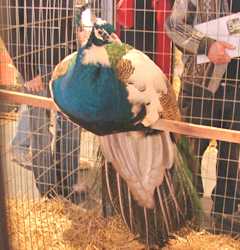 también fue la atracción el pabellón de aves, donde se lucían los pavos reales, tanto el de plumaje de colores verdes y azulados, como el inmaculado pavo blanco que lucía con orgullo su cola en forma de abanico.