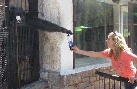 Hemos visitado con el señor Oviedo, un encanto de persona que trabaja en el zoo hace 31 años y a quien todos los animalitos reconocen increíblemente. Nos permitió que le diéramos una botellita de gaseosa a “Mario” un inteligentísimo chimpancé que la tomó de mi mano, se retiró a un rincón, abrió la tapa a rosca y bebió el contenido. Luego, se acercó nuevamente a la reja y me devolvió la botellita vacía. Increíble!!!!