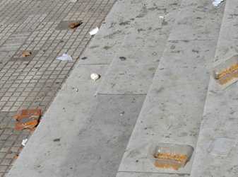 También en la zona de Plaza de Mayo hemos visto gente que duerme en la plaza, en la recova del cabildo y en la Catedral, donde los escalones de acceso y el peristilo quedan en un estado desastroso, sucio, con olor a orín y desperdicios de todo tipo. Otro tanto ocurre en la recova de la avenida Paseo Colón, en la que una seguidilla de hombres, perros, colchones y botellas de bebidas alcohólicas están diseminados en varias cuadras.